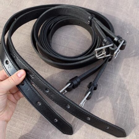 - Размер. Средняя длина путлищ варьируется от 130 до 170 см, ширина — от 24 до 29 мм. Толщина составляет около 6 мм. Модели для пони уже и короче, чем модели для лошадей. Количество отверстий может отличаться.